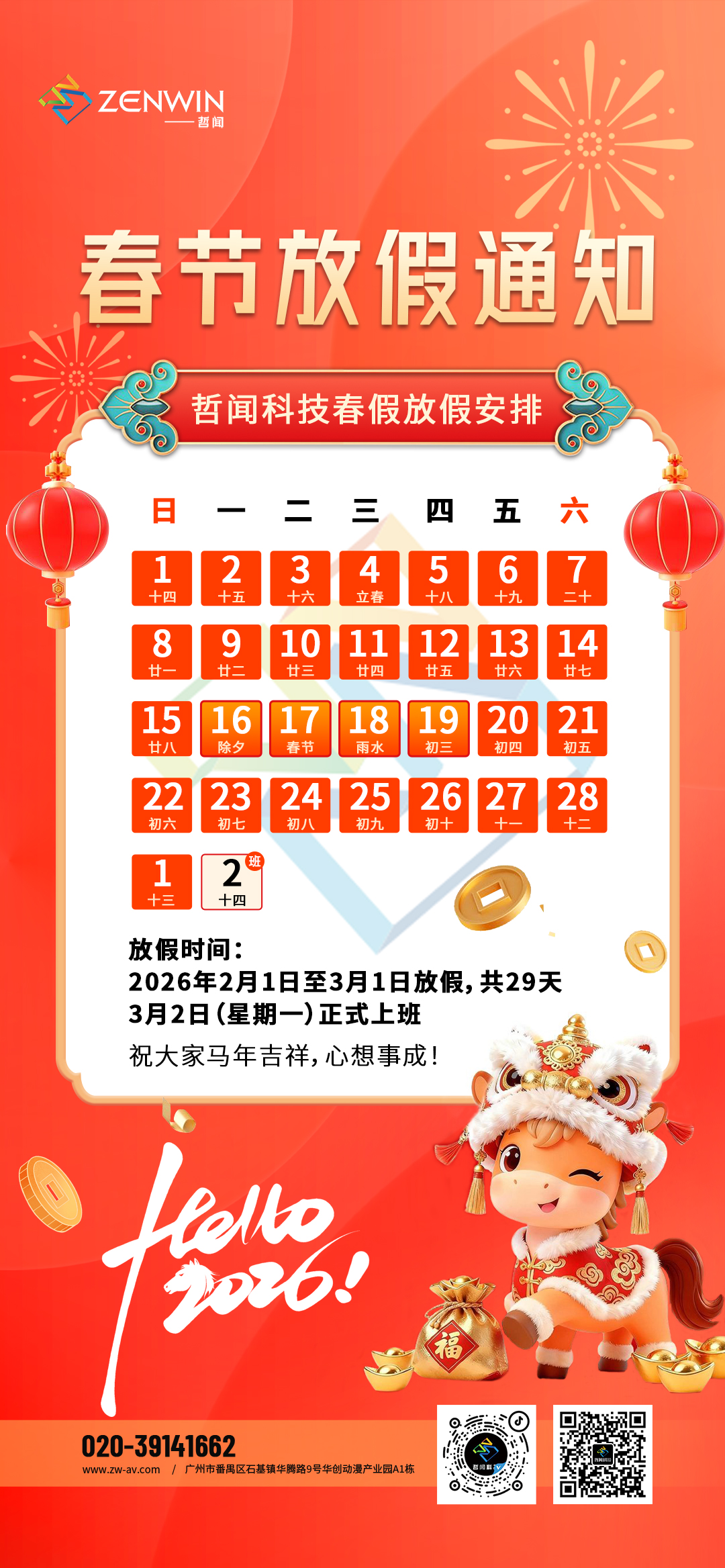 马年启新章,好运皆登场,哲闻科技在此提前恭祝大家:春节快乐,万事胜意!